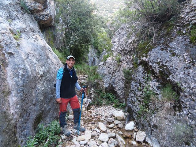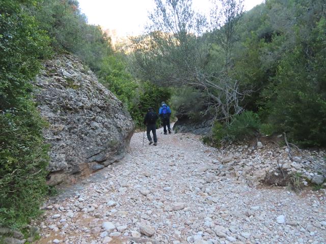 Seguimos hasta el lecho del barranco de San Martín. Avanzamos por él. Tal y como os pongo en la foto de debajo, ya que no hay apenas agua y se puede progresar sin dificultad.