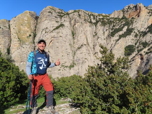 Lo siguiente que vemos, ya una vez en lo alto del collado, es una impresionante panorámica de las paredes de roca que surgen casi de sopetón ante nuestros ojos. A mi particularmente me impresionó contemplar semejante mole rocosa apareciendo de repente delante de mí.