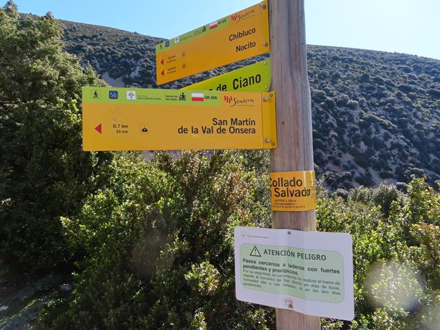 Nuevamente otro cartel de advertencia: » ATENCIÓN PELIGRO…el Paso de la Viñeta con tramos aéreos peligrosos. Se recomienda tomar la senda de Los Burros para llegar al Collado de San Salvador.» El letrero incluye el número de emergencias 112 en la parte de abajo. Con semejante cartelería, estoy seguro de que más de uno se ha pensado si hacer este paso.