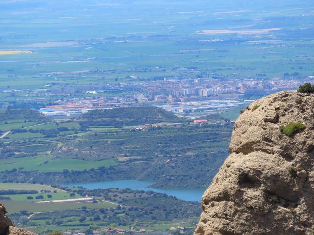 A mi derecha y a lo lejos en el horizonte creo adivinar una ciudad. Se ve muy abajo, y desde aquí muy pequeña. Es la ciudad de Huesca.