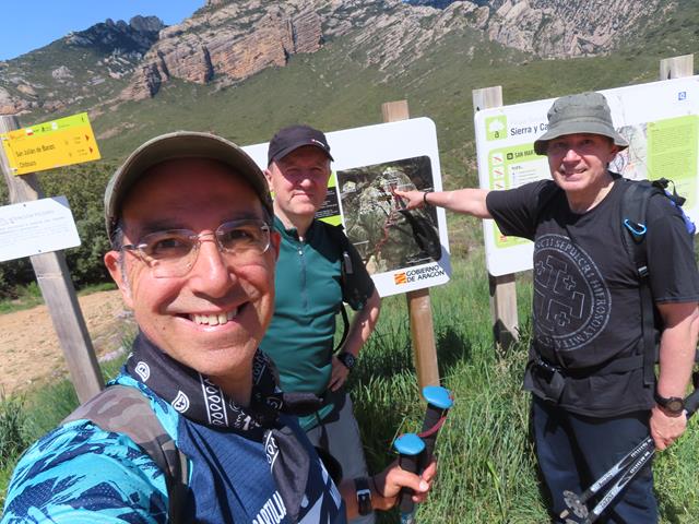 Comenzamos a caminar y salimos del aparcamiento situado junto al barranco de San Martín, cerca del pueblo de San Julián de Banzo. Caminamos por una pista que va hacia el noreste, siguiendo las señalizaciones del GR 268 (Camino de San Úrbez) etapa 5 (Nocito – Chibluco) y del S6 del Parque Natural de la Sierra y Cañones de Guara.