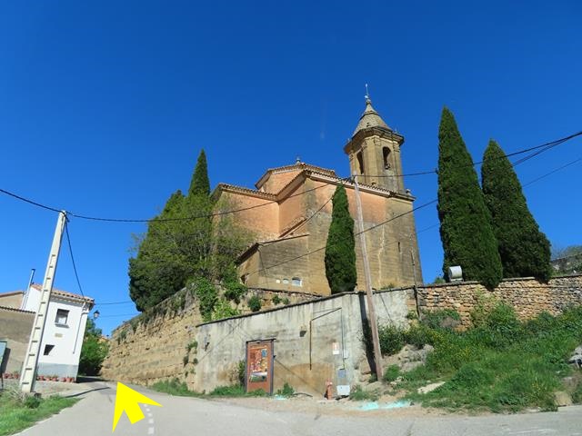 Ya en Sarsamarcuello, veo la iglesia que se alza junto a la carretera. Continúo recto hacia el interior del pueblo.