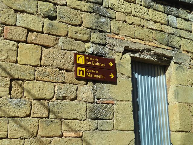 Continúo atravesando el pueblo. Puedo ver algún letrero que indica la dirección al mirador de los buitres y al castillo de Marcuello.