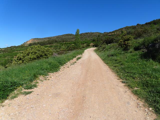 Una cómoda pista va ascendiendo por la loma del monte donde está situado el conjunto románico. De momento todo es paz y tranquilidad, estoy solo, únicamente acompañado por el sonido del viento y los pajarillos. Voy para allá.