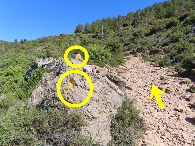 Junto a la senda veo también un hito de piedra y una flecha de color amarillo sobre una roca, ahora tengo la certeza de que este sendero lleva a alguna parte y que está transitado, así que continúo por él.