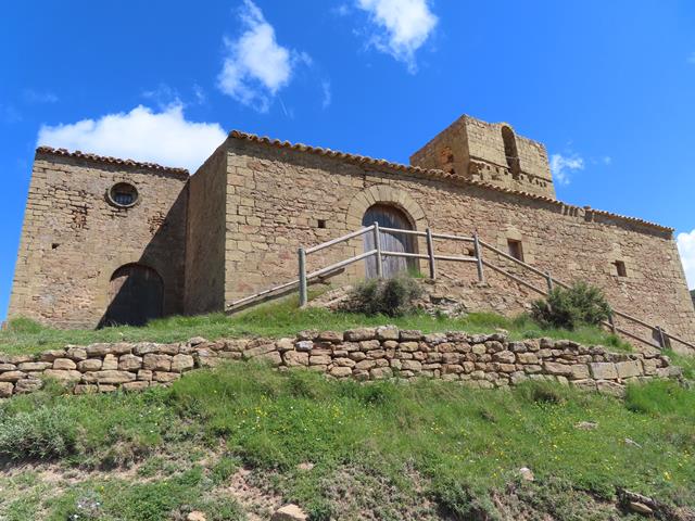 Ahora voy a acercarme hasta el castillo y la iglesia de Marcuello. Son sólo unos 300 m de pista y tengo curiosidad por verlos de cerca.Son las 12 de la mañana. Voy para allá.