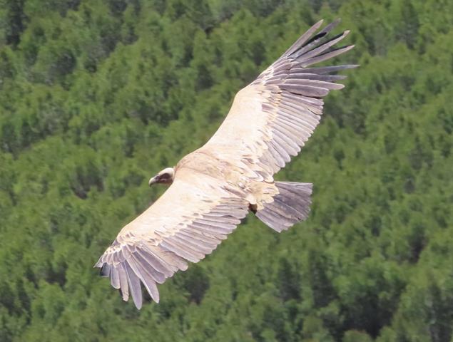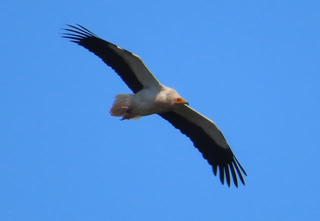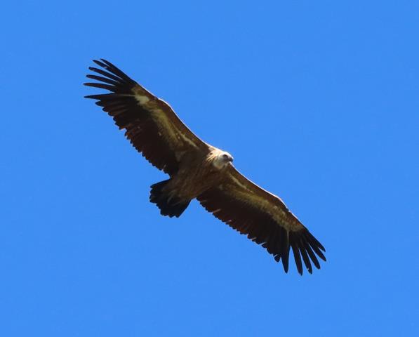 Pero también he venido a observar a los buitres, así que me quedo un rato en el interior del búnker a ver si tengo suerte y soy capaz de fotografiar a alguno de ellos. Y de pronto, ahí está, un buitre leonado que logro sacar. Al rato, un alimoche, al que también le hago una foto.