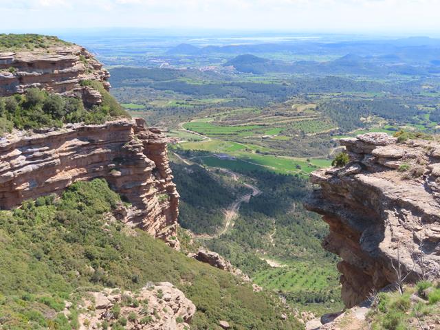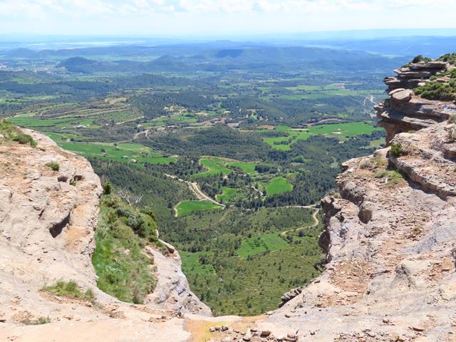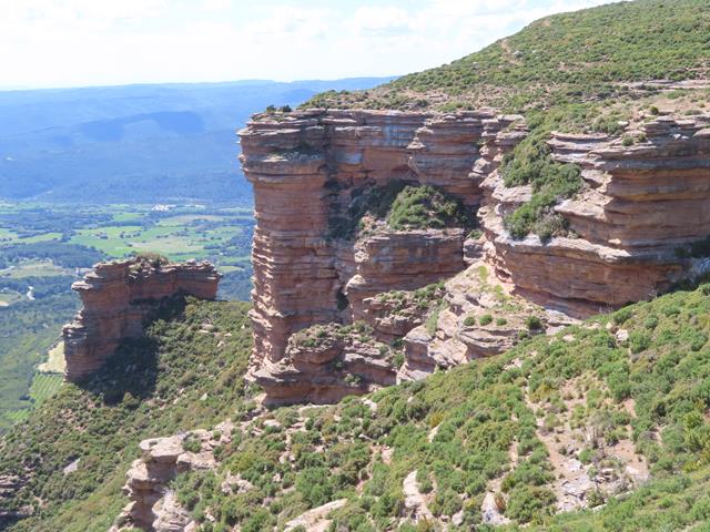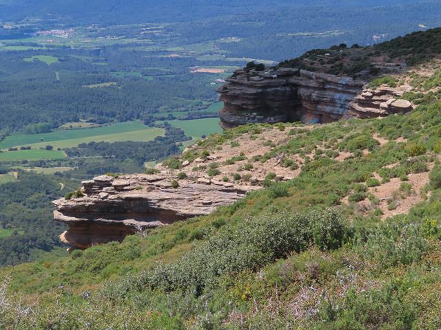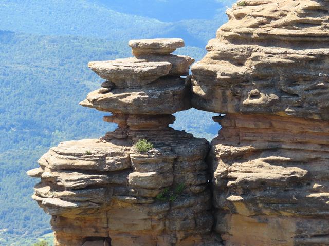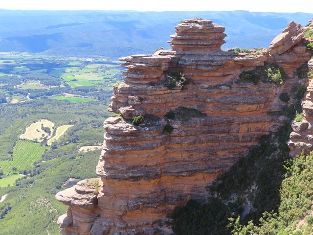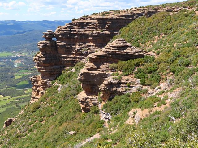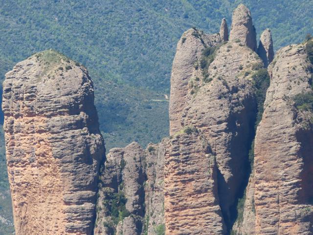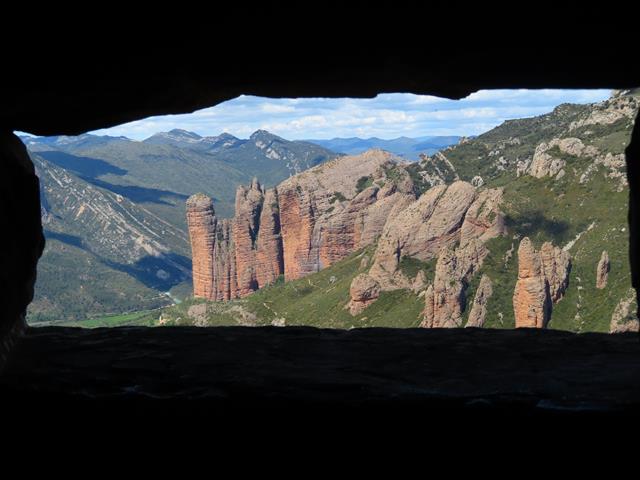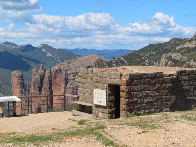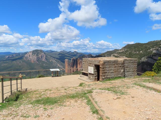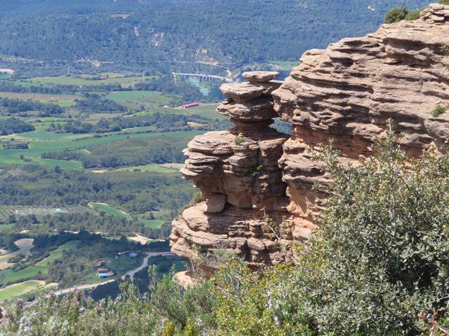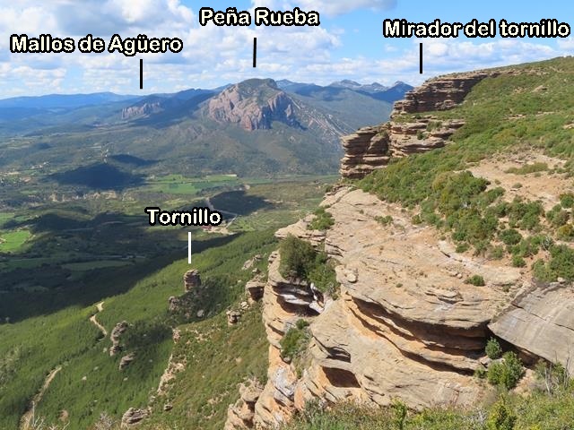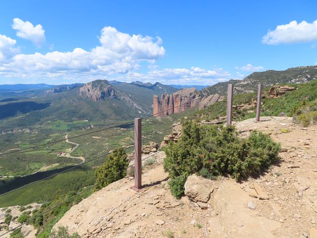 Desde el mirador hay unas magnificas vistas de la Hoya de Huesca. Y no sólo eso, sino que se pueden observar las espectaculares formaciones rocosas de Os Fils, por las que luego pretendo caminar hacia el mirador de los buitres.