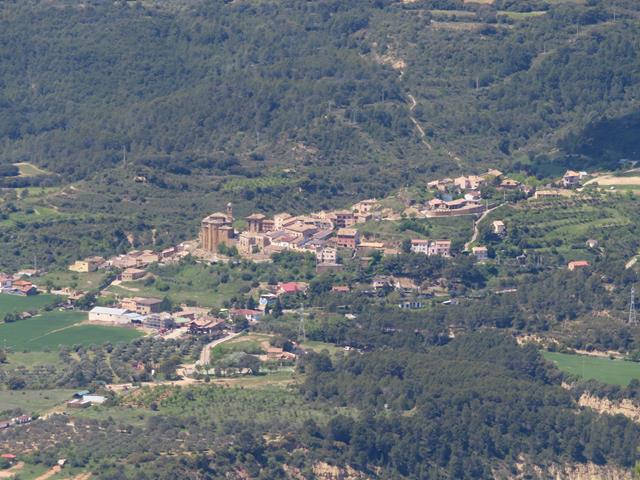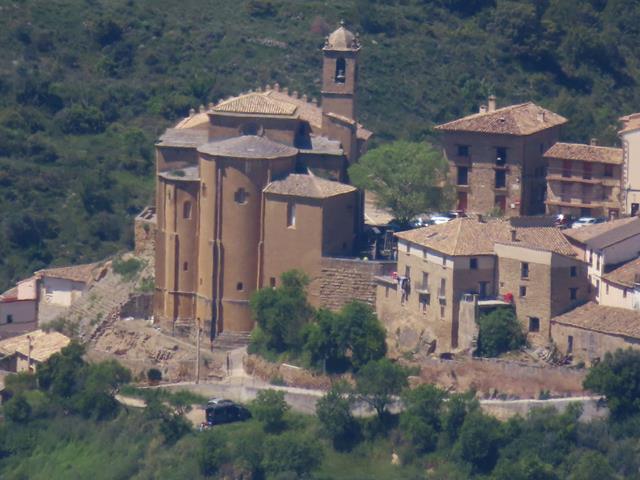 Ahora voy a descansar un rato y aprovecharé para seguir deleitándome con las vistas panorámicas de los Mallos y de paso comeré algo. Las vistas son magníficas, no sólo de los Mallos de Riglos, sino también de Peña Rueba, los Mallos de Agüero, y el pueblo de Murillo de Gállego, ahí abajo muy pequeño pero que con el zoom logro sacar desde muy cerca, y en particular su preciosa iglesia de San Salvador.