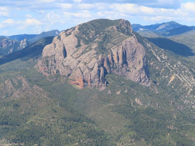 En el verano de 2024 realicé la ruta del «Camino del Cielo» o la vuelta a los Mallos, (los interesados pueden ver la entrada sobre ello en mi blog) y al terminar dicha andada, una vez ya cerca de Riglos, observé a lo lejos este mirador que se veía allá arriba sobre la Peña del Sol (o Peña de Don Justo 1.260 m) y me dije en aquella ocasión que me gustaría subir algún día allí. Así que hoy lo voy a hacer realidad.