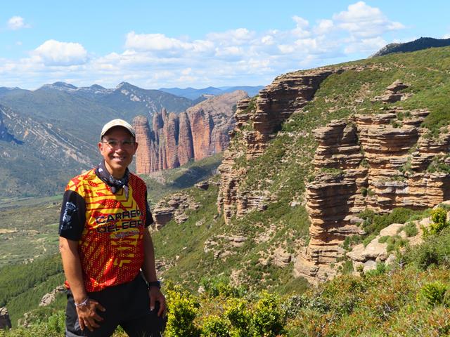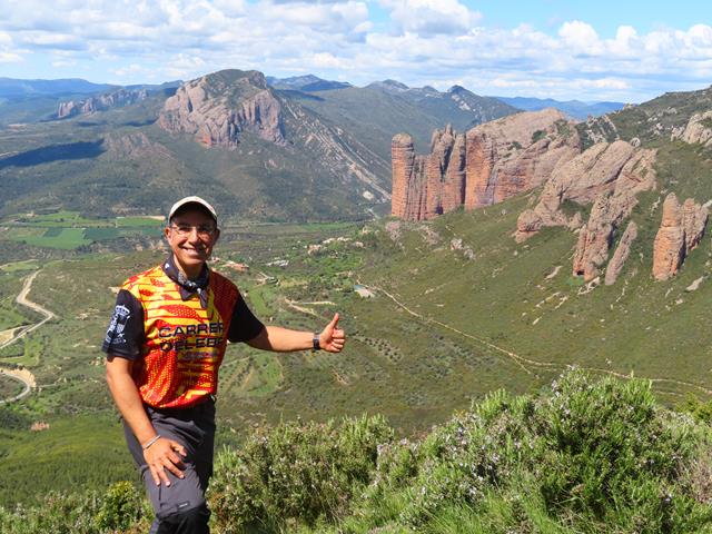 Me lo tomo con calma y disfrutando. Me hago una foto con los Mallos de Riglos y con parte de los acantilados de Os Fils.