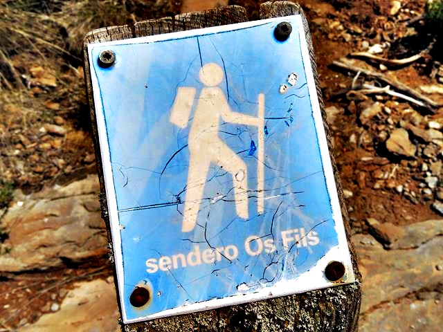 Y por fin, encuentro algo que me indica que me encuentro en el sendero de Os Fils, una pequeña placa mencionándolo, pero salvo esta prueba, nada de nada. Es muy raro, quizás alguien se ha dedicado a vandalizar los carteles de la zona o no me lo explico. En fin, espero que repongan pronto todo de nuevo.