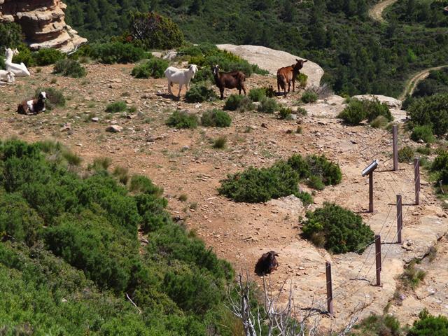 Llego pues al mirador de Os Fils, pasando entre estas cabras, que la verdad sea dicha, son reticentes a apartarse y además se me quedan mirando con cara de pocos amigos. Pero al final se impone el hombre sobre la bestia y no les queda otra que hacerme paso y abandonar el camino que lleva al mirador. Tengo de todas formas la sensación de que el intruso, en el fondo, soy yo.