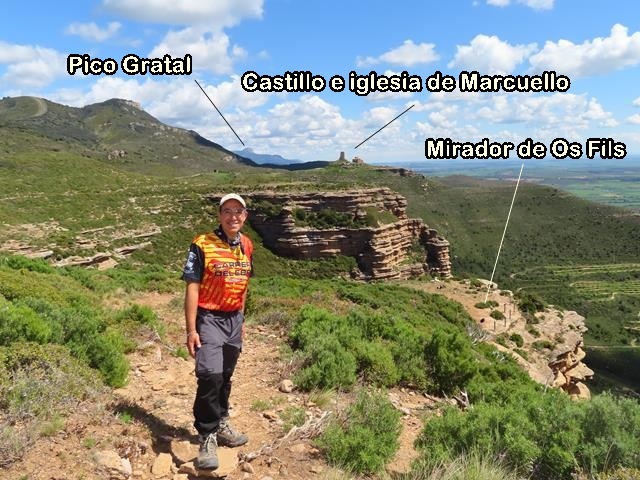 Hacia el lado contrario, y avanzando hacia la ermita de San Miguel, puedo distinguir en el horizonte el castillo y la iglesia de Marcuello mucho más lejos, el Pico Gratal, y más abajo, a mi derecha, otro mirador, el de Os Fils. Allá voy.