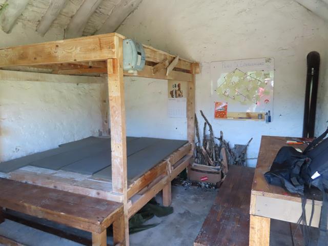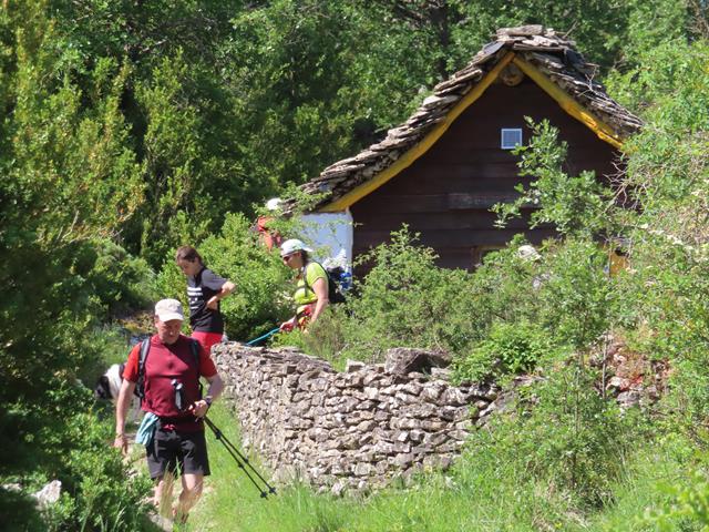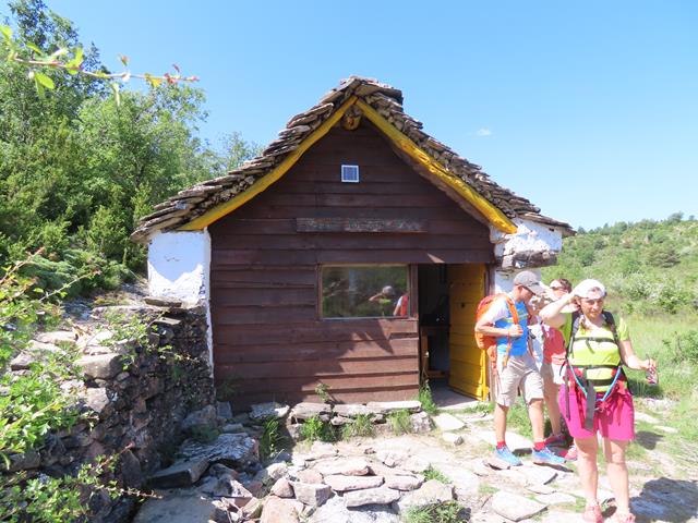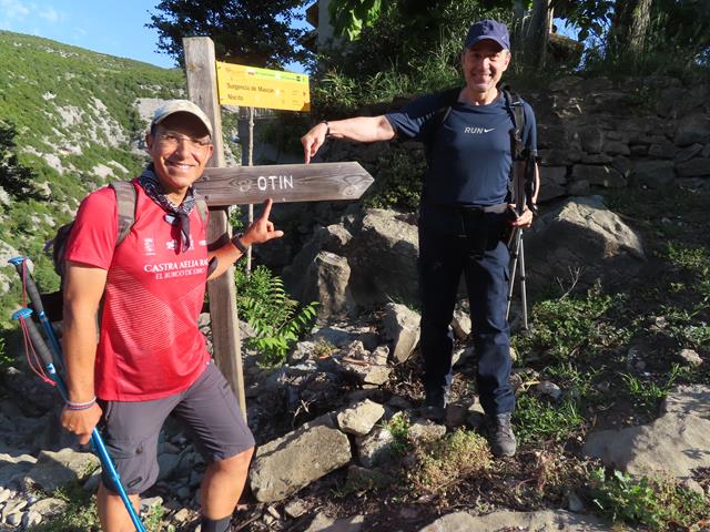 Son las 11 de la mañana cuando llegamos a las proximidades del despoblado de Otín. Antes de entrar en lo que queda del pueblo, a la izquierda, existe una cabaña que hace las veces de refugio y cuyo uso es libre. Aquí nos encontramos con las primeras personas que vemos hasta ahora en todo el trayecto.