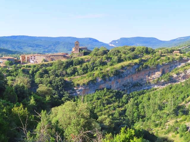 Seguimos avanzando y podemos contemplar a nuestra izquierda, parte del casco urbano de Rodellar y la iglesia románica de San Juan.