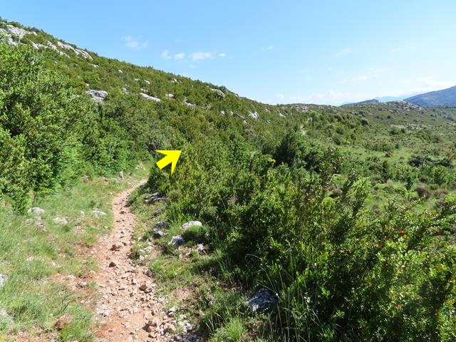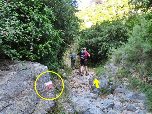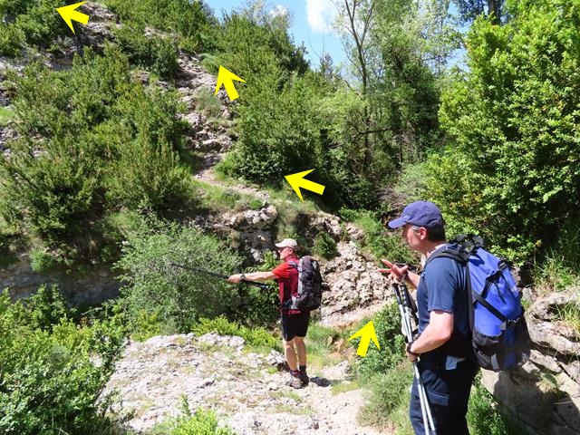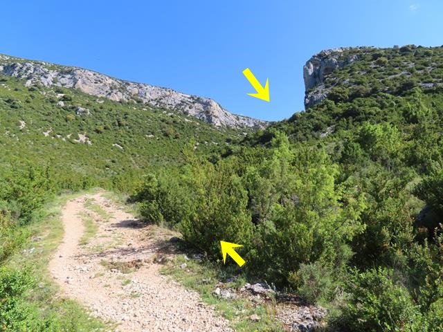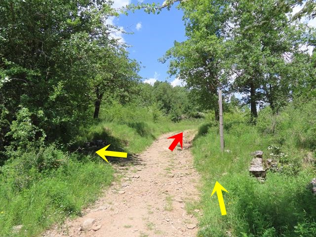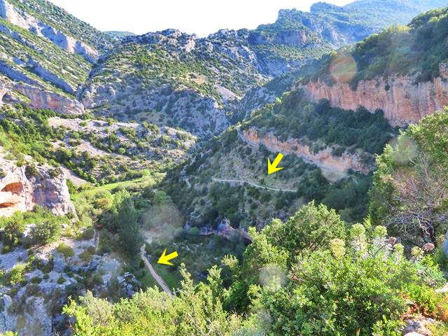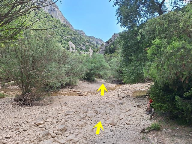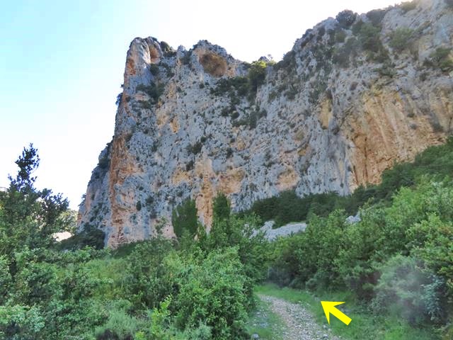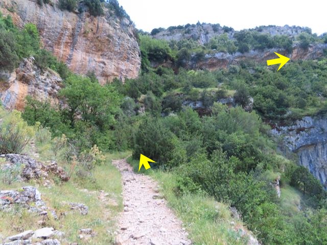 Tal y como os pongo en la foto, siguiendo la flecha ahora nos vamos a introducir en el llamado barranco de Andrebot, una subida que nos permitirá acceder al collado donde se encuentra el Dolmen de la Losa Mora.