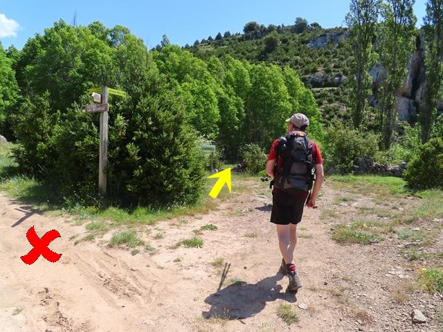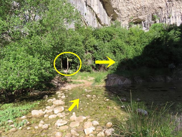 Pasan de las 8:45 horas cuando ya hemos bajado bastante y encontramos un poste de dirección que nos indica que estamos a tan sólo 5 minutos de la surgencia del río Mascún. Vamos para allá.