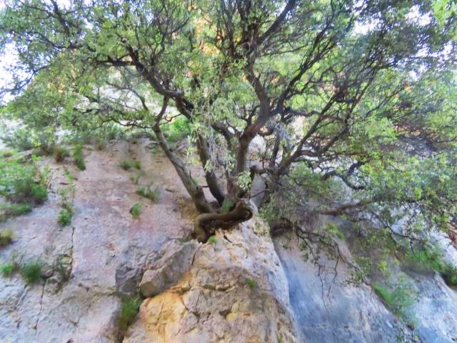 Un árbol, pegado a la roca en un equilibrio casi imposible, ha crecido en ella aprovechando una grieta que le ha permitido echar raíces. Es increíble lo que la naturaleza puede llegar a hacer por sobrevivir.
