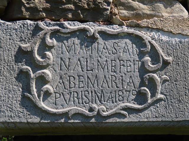 De las dos casas que encontramos en la parte alta de Otín, destaca la casa Cosme Bellosta y la iglesia que no nos aceramos a visitar pues prolongaríamos ya demasiado la caminata y aún nos queda la vuelta. El tiempo, por desgracia, ha hecho mella en ella. Os pongo varias fotos de esta imponente casa que vivió mejores tiempos en el pasado. Me llama la atención que sobre una gran puerta dovelada, hay una inscripción en la que pone: «Año 1737».
