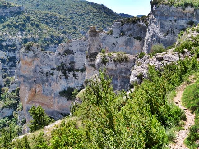 Todo el camino esta rodeado por curiosas formaciones rocosas. Es fácil despistarse contemplando el paisaje, pero hay que prestar atención al suelo, pues en algunos tramos hay bastante piedra suelta y vamos de bajada.