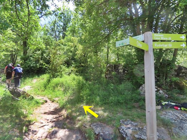 Tras recorrer este sendero desde el dolmen, llegamos a un desvío. Un poste de dirección nos indica que debemos girar a la derecha para llegar a Otín. Son las 10:42 horas.