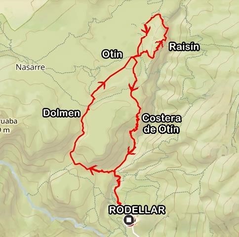 El camino de ida hasta Otín lo hemos hecho por el Mascún inferior, el barranco de Andrebot y el Dolmen de la Losa Mora. Después hemos ido desde Otín por la pista de Letosa hasta la cabecera del barranco de Raisín donde hemos tomado la faja del mirador de Mascún, para desde allí,volver a Otín y regresar a Rodellar por un camino distinto al de la ida, la Costera de Otín.