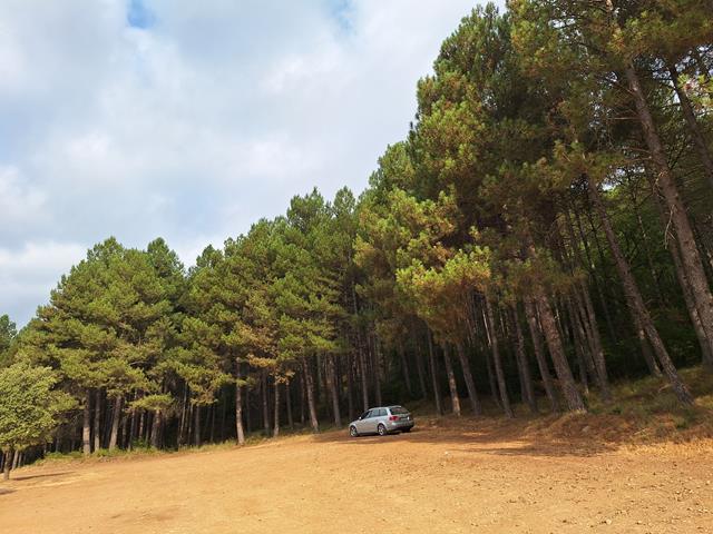 Son las 10 horas cuando llegamos al aparcamiento del Pozo de Pigalo, una amplia explanada de tierra a 806 m de altura sobre el nivel del mar junto a un frondoso pinar que la delimita. Ahora mismo está totalmente vacía, así que mi coche es el único, aunque supongo que mas tarde algún otro irá llegando.