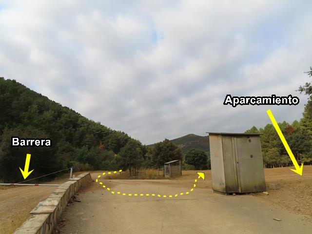 Echo la mirada hacia atrás y veo la pequeña rampa de tierra por la que he accedido con el coche a la explanada y la barrera que cierra el acceso directo a la zona del Pigalo, impidiendo el paso de los vehículos, que no tienen otro remedio que quedarse en el aparcamiento habilitado para tal fin.
