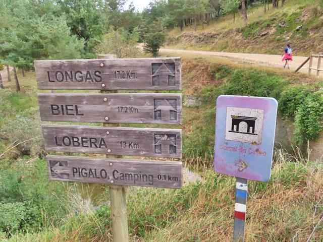 De nuevo un giro hacia la izquierda, y de nuevo el cartel hacia el Corral de Calvo – sin indicar distancia ni tiempos – , Longás (12,7 km) y la Ermita de Santo Domingo (14,3 km). Abandonamos la dirección hacia Biel (12.8 km) que nos acompañó durante toda nuestra caminata, ya que indica todo recto, sin girar como hacemos nosotros ahora.