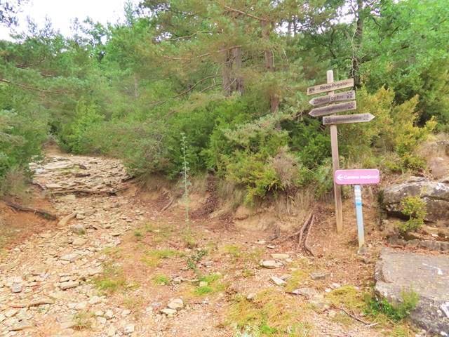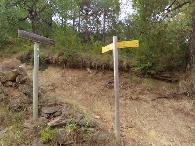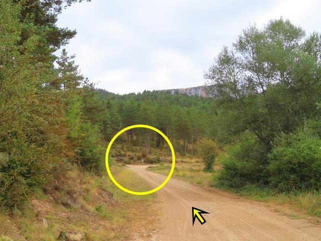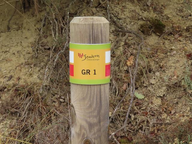 Siguen apareciendo en los laterales de la pista postes de señales que llevan a otros destinos pero no al nuestro. Aparece un poste del GR 1, el conocido como sendero histórico de Aragón por el que ahora transitamos.