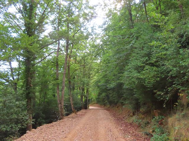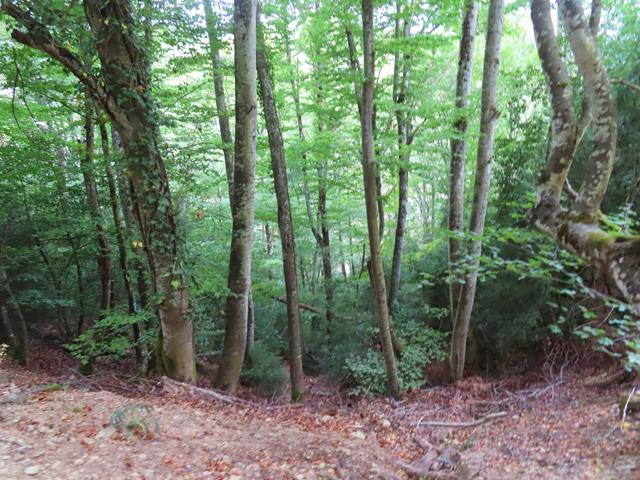 Ahora ya es una repetición en sentido inverso de la ruta inicial. A las 13:10 horas estamos pasando otra vez por el hayedo. El cielo está cubierto, pero no llueve, con lo cual de momento estamos teniendo suerte.