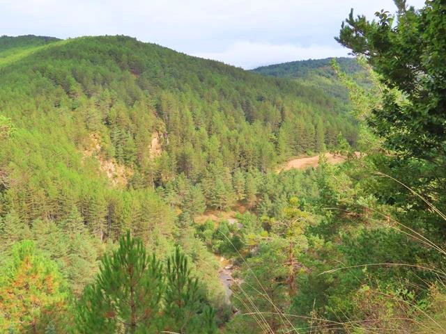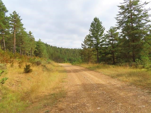 Los bosques de pinos que se pueden observar a medida que caminamos por esta pista son abundantes y están muy bien conservados, lo que es especialmente gratificante y bonito. Abundan los pinos silvestres (Pinus sylvestris), pero también el pino negral (Pinus nigra), así como quejigos, boj, acebo, madroño y como hemos visto antes en algunas zonas, las hayas.