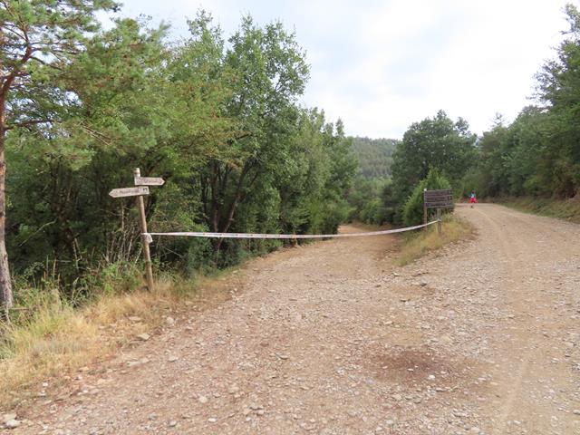 A las 10:25 horas nos encontramos con un ramal que hacia la izquierda sale de la pista. Curiosamente una cinta cierra el paso. Desconozco el motivo.Un cartel indica que por ahí se va a Lobera de Onsella (7 km), y otro poste junto a la pista principal indica que por allí se va también a Lobera (11 km) y todo recto hacia Biel y Longás. Seguimos hacia adelante sin abandonar la pista principal.