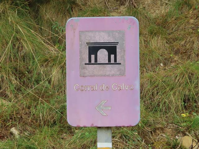Al rato, a un lado del camino, volvemos a ver cartelería indicando el Corral de Calvo. El color negro es el que mejor se mantiene con el paso del tiempo, deberían plantearse utilizarlo para la información relevante, como los nombres o direcciones.