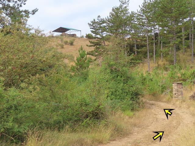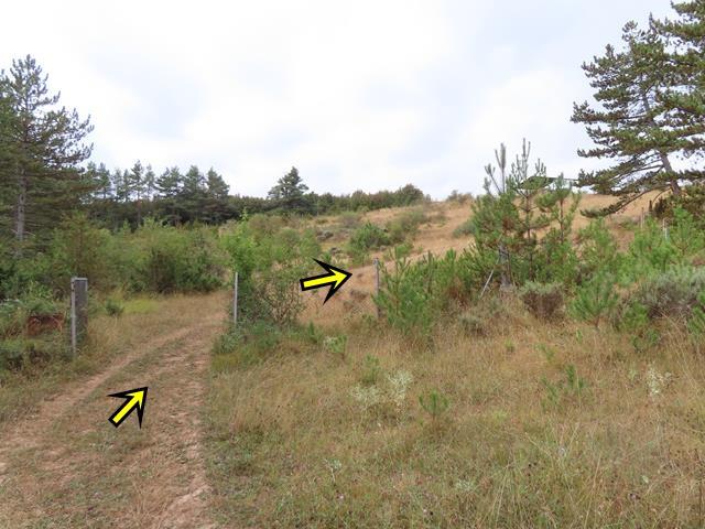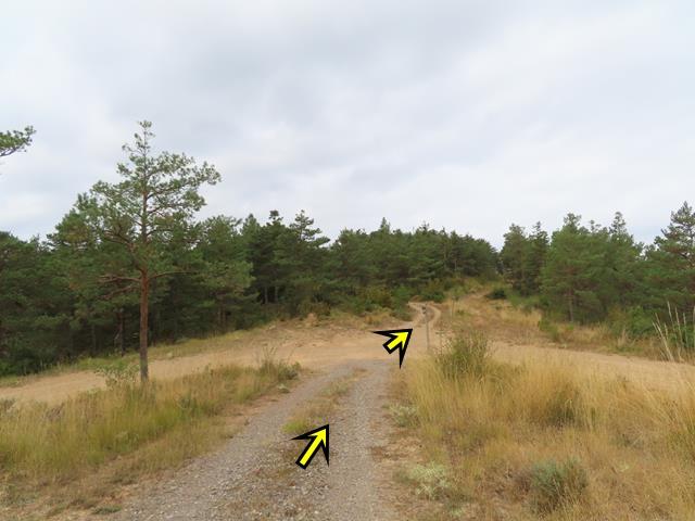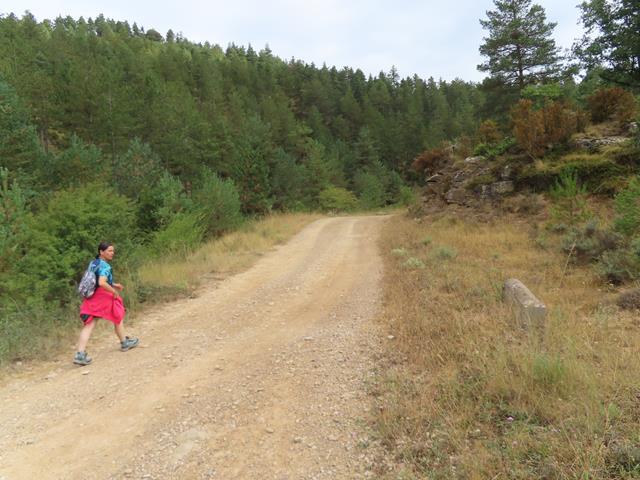 Son las 13:17 horas cuando llegamos a la altura de uno de los postes de dirección a un lado de la pista que indican «camino medieval». El sendero va claramente de bajada. Decidimos esta vez tomarlo a ver si realmente se acorta trayecto.