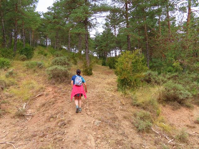 No hemos tomado el camino medieval, pero un senderillo, o al menos eso parece, sale a la izquierda de la pista y se interna en el pinar. Creo que si subimos por ahí, lograremos acortar un buen trecho y llegaremos mucho antes a nuestro objetivo, así que lo tomamos, aunque sin saber muy bien sin nos llevará allí, pero bueno, siempre se está a tiempo de desandar lo andado, eso sí, tomando referencias en todo momento de por donde vamos.