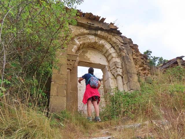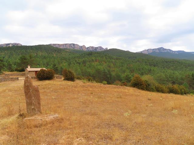 Comenzamos el regreso pero echo un último vistazo al horizonte antes de marchar. Por un lado observo los abundantes bosques de las montañas de alrededor, y por otro, la Sierra de Santo Domingo, una bonita vista que tal vez fue uno de los motivos que llevó a los hombres del siglo XI a construir a sus pies este asentamiento.