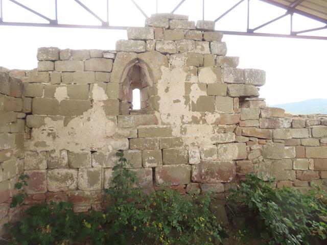 En el interior de la cabecera se encuentra una dependencia cuadrada, el «recinto sagrado» de escasos 4 metros de lado y que está separado, pero también unido, (siguiendo el modelo hispano-visigodo) a la nave donde se congregaban los fieles que era de tipo rectangular.En esta pared este se puede ver un bello vano ligeramente apuntado,de derrama interior y aspillerado al exterior.
