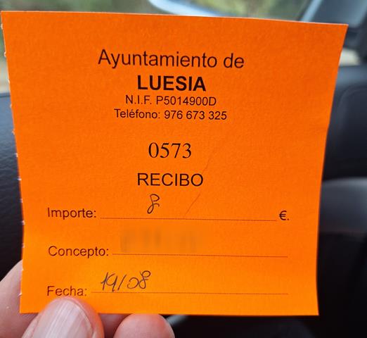 Llegamos a Luesia sobre las 9,15 horas. Lo primero que hacemos es consultar en el pueblo cómo sacar un ticket de parking en la zona del Pozo de Pigalo, porque está regulado y si queremos estacionar allí es obligatorio conseguirlo bajo posible sanción de no hacerlo.