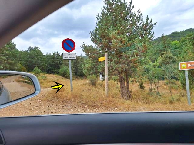 También nos dice que dicho ticket nos lo puede facilitar una persona que veremos está en una pequeña caseta a mano derecha del inicio de la pista que lleva al Pozo de Pigalo, y que podemos después dejar de forma visible en el vehículo.Optamos por no perder más tiempo y nos dirigimos hacia allí.