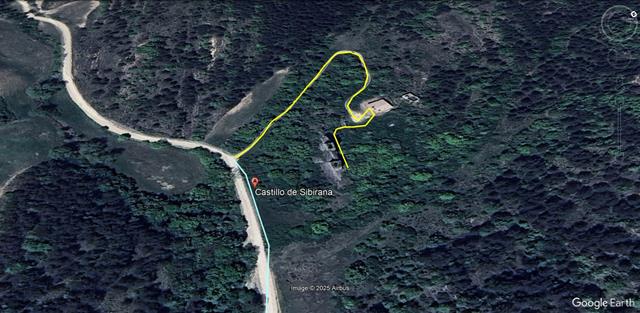 Una vez de nuevo en el Pozo de Pigalo, -y también en coche y por pista- iremos hasta la Ermita de Santa Quiteria y el Castillo de Sibirana (873 m) que está a unos 2.28 km desde Pigalo. Aparcaremos y subiremos hasta el castillo a pie tras recorrer unos 300 metros. Esta vez haremos en total entre ir y volver 5.86 km en coche y 0,6 km a pie.