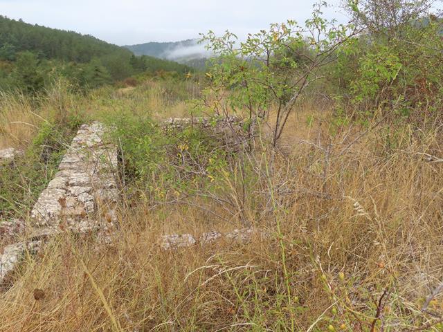Llevamos caminando veinte minutos y todo atisbo de senda o pista desaparece. Acabamos en una loma herbosa donde únicamente veo un muro de piedra de lo que pudo ser una construcción medio oculta por la vegetación, pero nada más. No me gusta. No sé dónde estoy y me planteo volver sobre mis pasos o tratar de seguir avanzando a ver si al final este camino lleva a algún sitio. Decido echar un vistazo por los alrededores y vuelvo a localizar una pista semi-oculta que sale de la planicie. La sigo.