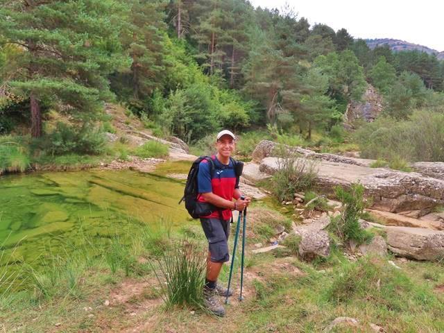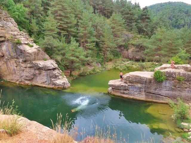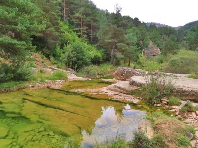 De momento lo que estamos viendo podría ser un río más de montaña hasta que llegamos a la zona propiamente del Pozo de Pigalo donde ahora sí, una enorme poza natural de aguas cristalinas aparece entre grandes rocas. Reconozco que el paraje es muy bonito, el agua color verde esmeralda y toda la vegetación que lo rodea forman un enclave precioso, y entiendo también que la gente venga aquí a bañarse, aunque no sé si yo me lanzaría a este pozo.