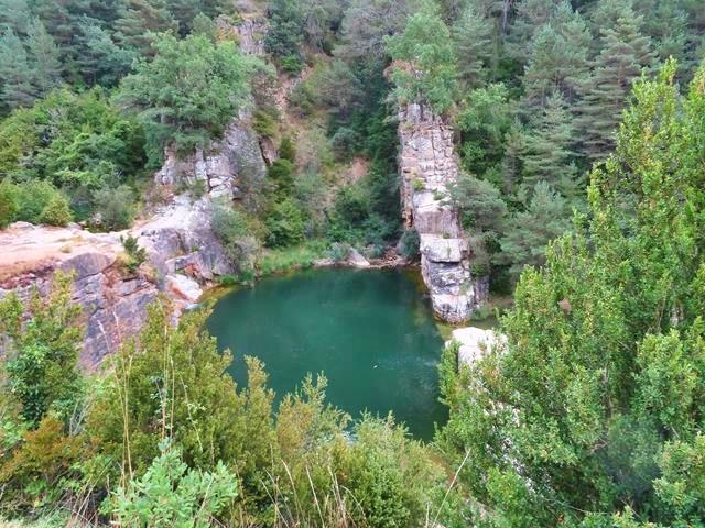 Pues bien, son las 13:30 horas y llegamos a la zona del Pozo de Pigalo. Haremos una visita rápida puesto que la hora que perdimos en el «regreso frustrado» ahora nos penaliza y queremos ir a visitar el castillo de Sibirana y la ermita de Santa Quiteria. No hay de momento nadie por aquí. Es agosto, pero no es fin de semana. Quizás un martes como hoy no sea el día de mayor afluencia, además no hace sol, y eso tal vez también puede desanimar a la gente.