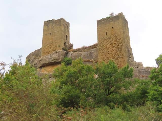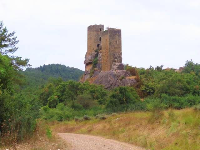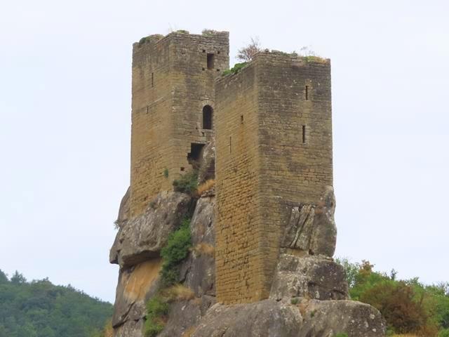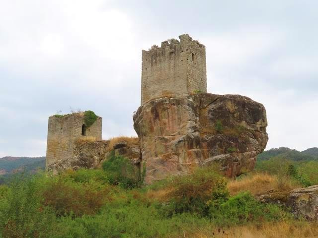 Son las 14 horas cuando ya desde la pista vemos las magníficas torres del castillo de Sibirana. No hay nadie, y puedo parar tranquilamente a un lado para hacer un par de fotos. Me parecen impresionantes estas dos torres defensivas en lo alto de una gran roca.