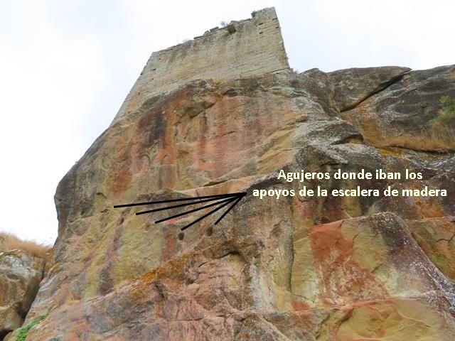 Las torres no se encuentran mal estado, -y eso que tanto las torres como la ermita que iremos a ver luego son de propiedad privada-,seguramente debido a que el acceso a las mismas es imposible ya que antiguamente se hacía mediante una escala de madera que ha desaparecido y de la que sólo quedan las marcas en la gran roca donde se apoyaba. Os lo pongo debajo en la foto que hago en la base de la torre oeste.