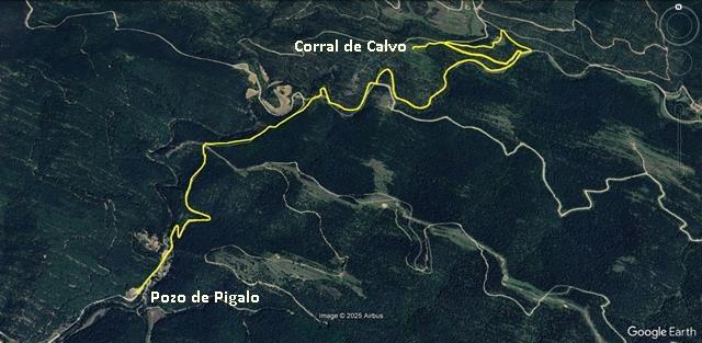Ahora estamos descendiendo. Tiene su lógica, pues Pigalo está a 806 m de altitud y el Corral de Calvo a 945 m, luego hay que bajar. Continuamos un poco más a ver.